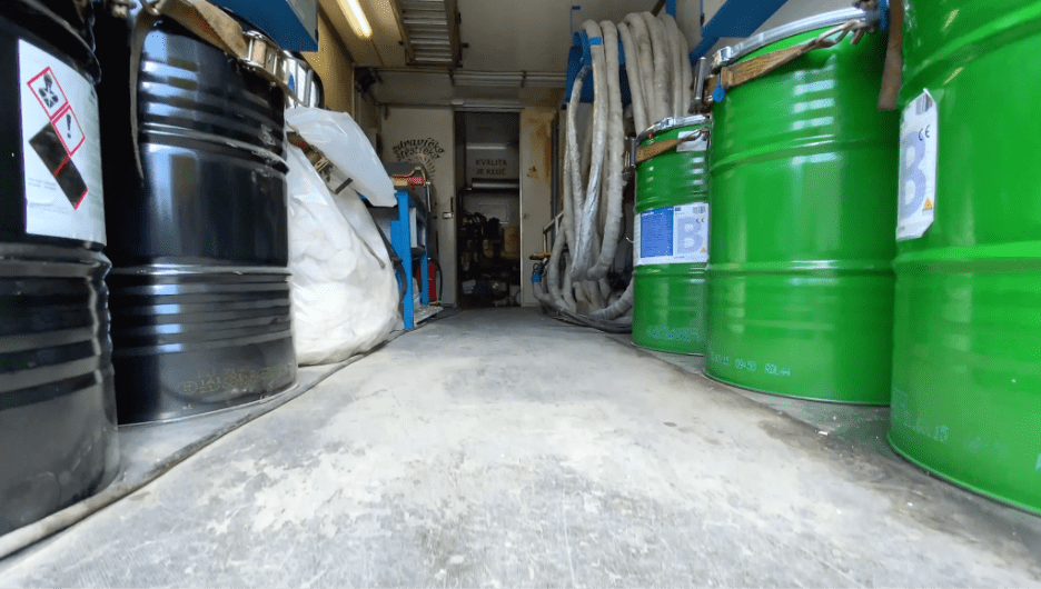 Kanadská pena je veľmi citlivá na teplotné výkyvy, preto musíme zabezpečiť, aby sa materiál počas prepravy neznehodnotil. Na tento účel používame izotermickú nadstavbu, ktorá umožňuje udržiavať stabilnú teplotu materiálu počas celej doby prepravy. Materiál sa skladá v sudových nádobách. Na jeden väčší rodinný dom použijeme jeden set z dvoch sudov, pričom každý set váži približne 500 kg.