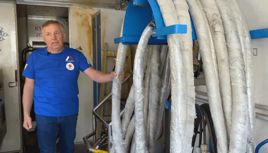 Reaktor je navrhnutý tak, aby materiál zahrial na požadovanú teplotu. Používame dva okruhy na ohrev materiálu. Malý okruh, kde sa materiál zohreje na 32 °C, a veľký okruh, ktorý sa používa na následné aplikovanie materiálu do hadíc. Hadice sú rôznych dĺžok, závisí to od konkrétneho reaktora, ktorý používame. Naše reaktory sú E30, ktoré umožňujú pripojiť hadice s dĺžkou od 63 do 93 metrov. Hadice sa skladajú z troch častí: dvoch, ktoré prepravujú materiál, a jednej na vzduch. Na konci hadíc je aplikačná pištoľ, ktorá mieša materiál pred jeho aplikovaním na povrch.